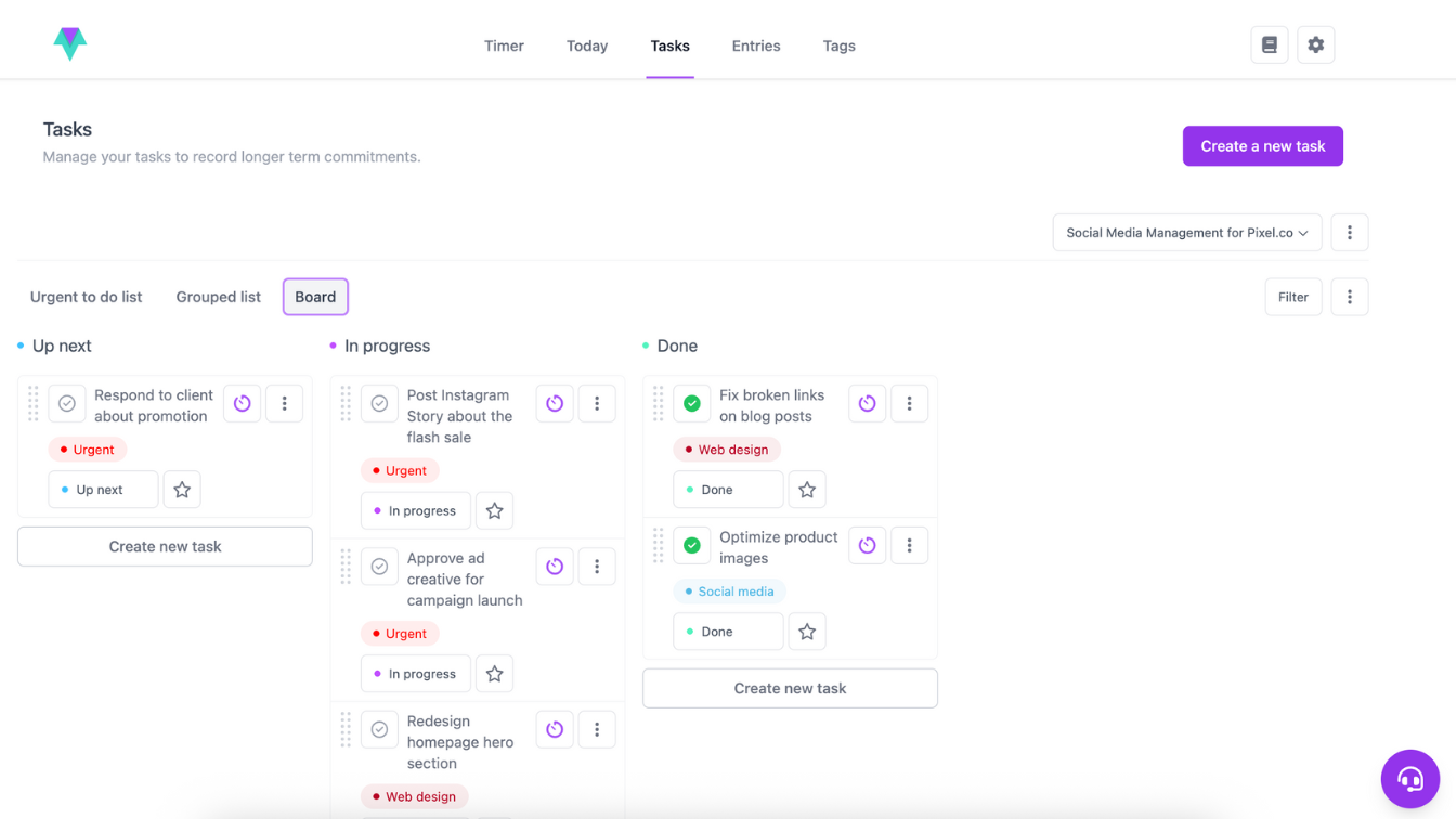 If you freelance or work with multiple clients: Each client can have a distinct workspace with its own workflow, giving you clear boundaries and better organisation.