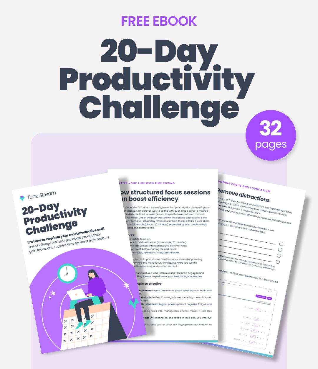 Receive our FREE 20-Day Productivity eBook if you join the Time Stream newsletter!